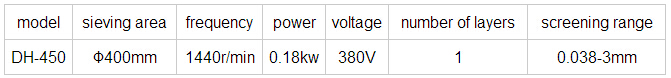 450 series filter sieve is a small type single deck vibrating screening filtering machine of low noise,high efficiency,moveable.Which have both two function of powder,particle separation.